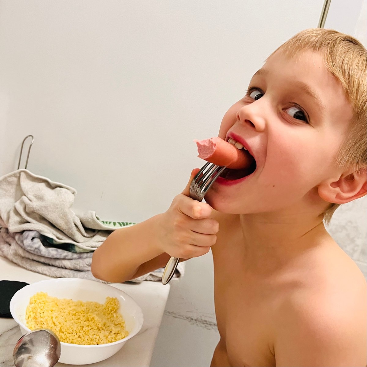 — А сосиска не труп. — Глубокомысленное замечание, — сказала. Я решила не расстраивать Влада тем, что на самом деле сосиска в глубине души тот ещё трупешник. Конкретно эта, по-моему, из трупа коровы. Но, неумеючи готовить, такие вещи вслух детям лучше не говорить)) __ #МаринаБастрикова_жмать
