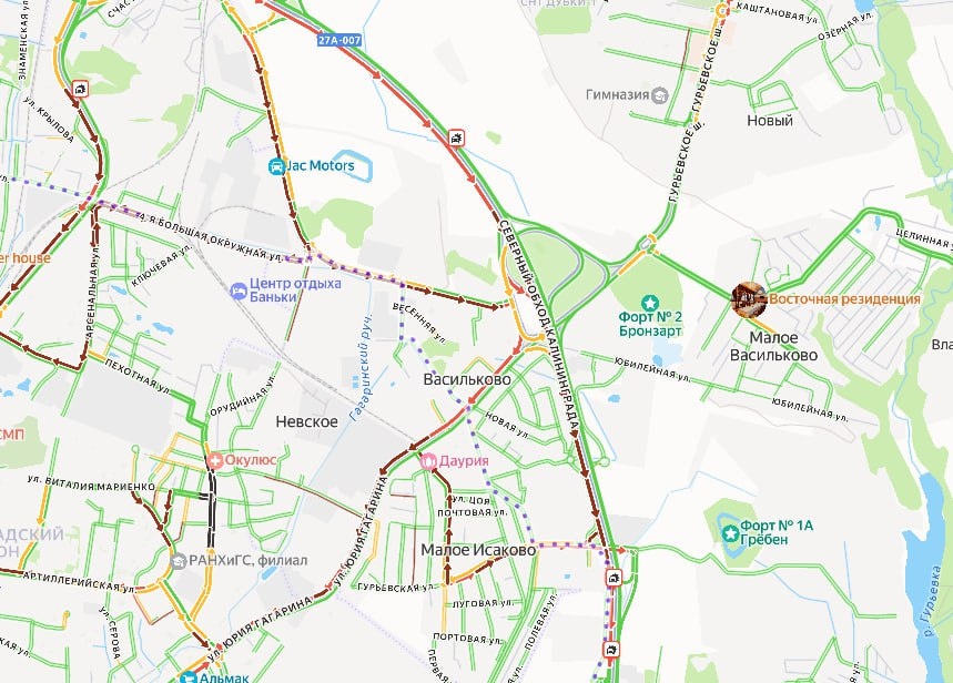 Судя по данным «Яндекс. Пробки», всё стоит от развязки с Приморским кольцом.
