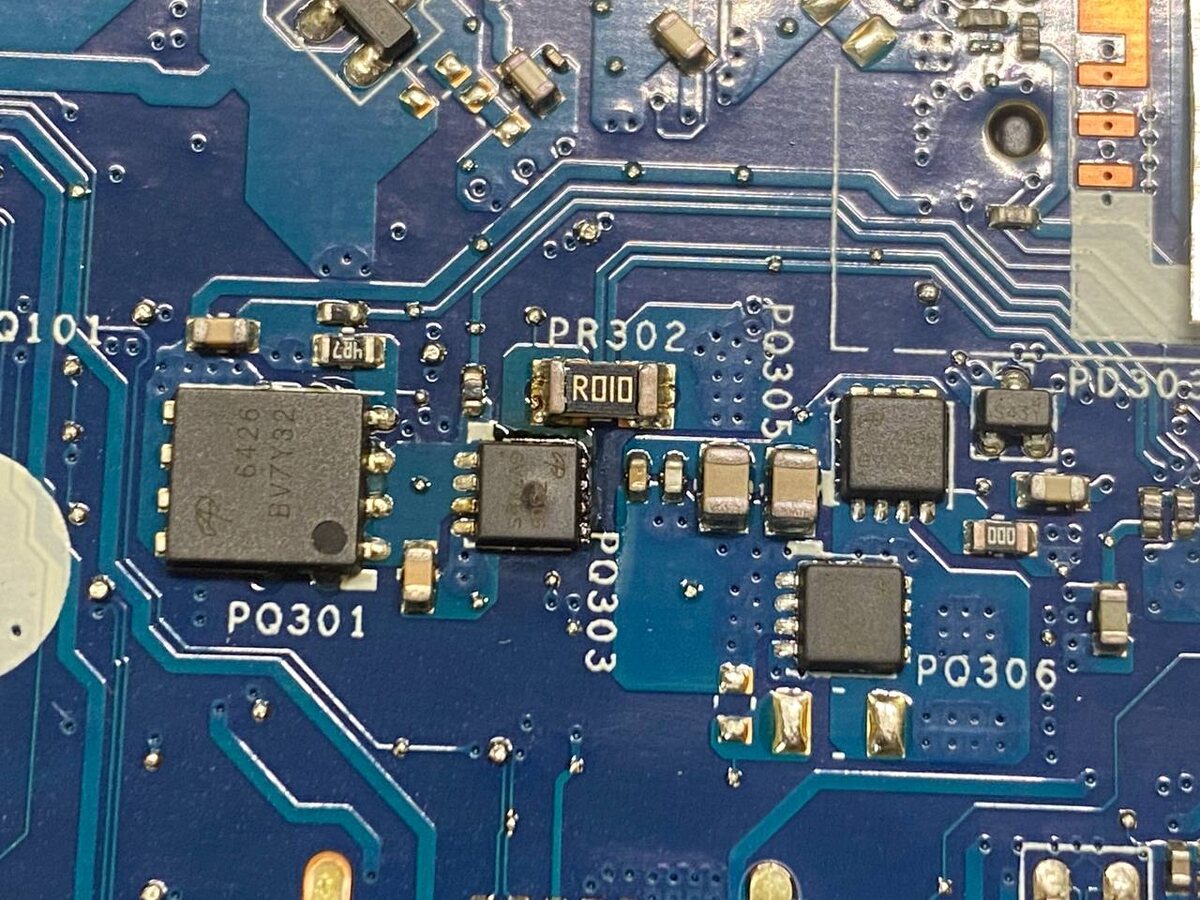 Ноутбук поступил в сервис после самостоятельного ремонта блока питания. Перепутали полярность и подключили. Результат - входные с дыркой плюс улетело на ШИМку с дежуркой.