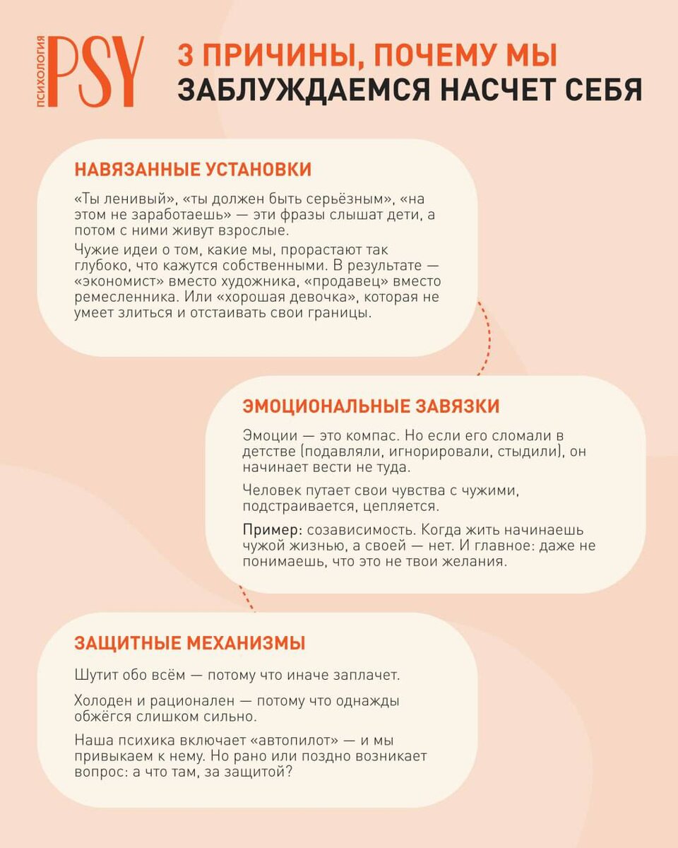 ️⃣ ☑️3 причины, почему мы заблуждаемся насчёт себя (и даже не подозреваем об этом) 🟦Наш мозг не злодей, но мастер маскировки. Он оберегает нас, создаёт иллюзии, чтобы защитить от боли — но в какой-то момент именно эти иллюзии начинают мешать жить. 🟦Осознавать свои заблуждения — это как снимать броню: страшно, но освобождает. ✔️Давайте разберёмся, откуда берутся эти заблуждения. #советы @Пинский Вестник 📱Ютуб 📱ВК 📱ИНСТАГРАМ 📱ОК 📱ФЕЙСБУК 📱ТИК ТОК Прислать новость