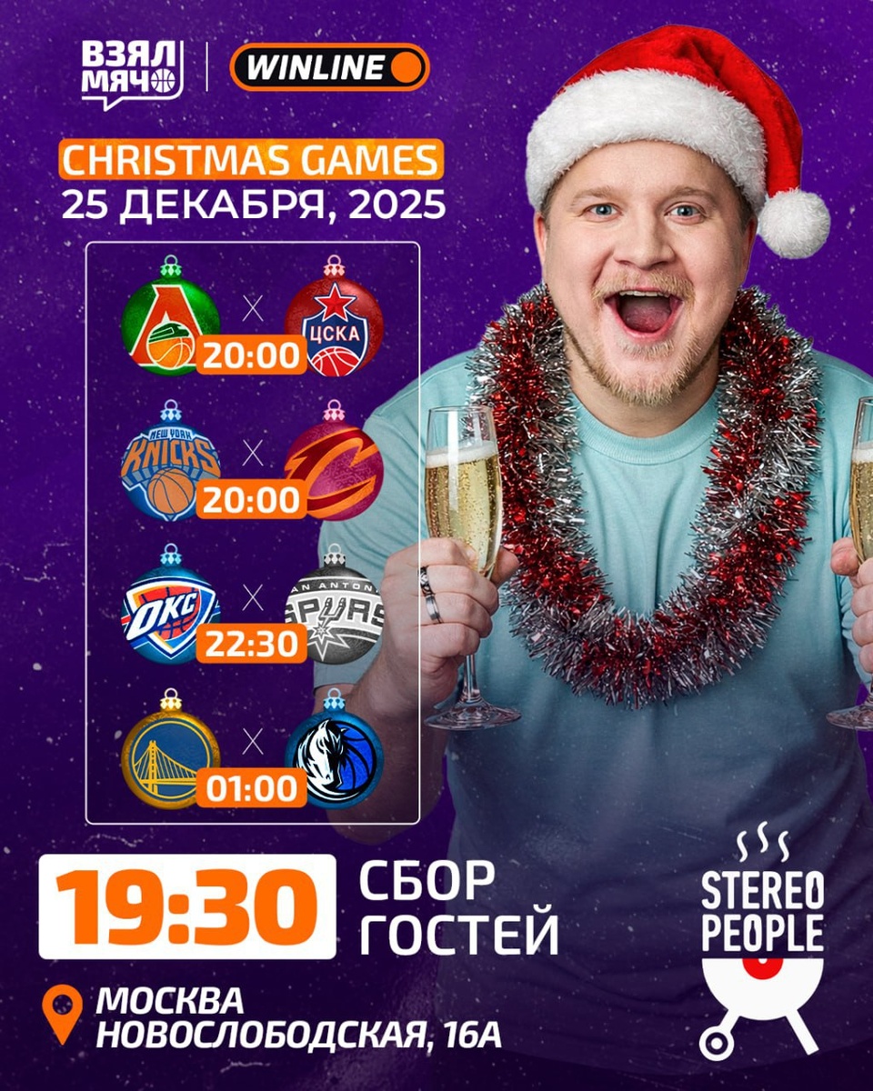 ! Смотрим рождественские матчи НБА вместе! Бронируйте столики, количество мест ограничено. ⏰ 25 декабря, в 19:30 📍 Бар «STEREOPEOPLE», Новослободская 16А ☎️ Для бронирования звоните по телефону +7 901 761 4121 и внесите депозит в размере 3 500 рублей (за одного человека) на 1 матч, или 5 000 рублей (за одного человека) если будете присутствовать на 2 из 3 матчей. Депозит вы сможете потратить на заказ еды и напитков во время просмотра. 🏀 ПОДПИШИСЬ — ЗДЕСЬ ЖИВЁТ БАСКЕТБОЛ!