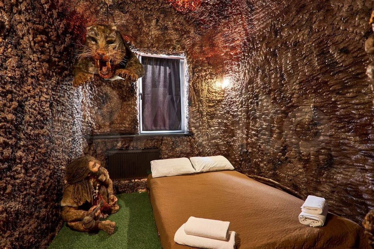 В Подмосковье сдают однушку для настоящего первобытного эстета: из стены торчит саблезубый тигр, у кровати дежурит пещерный человек с