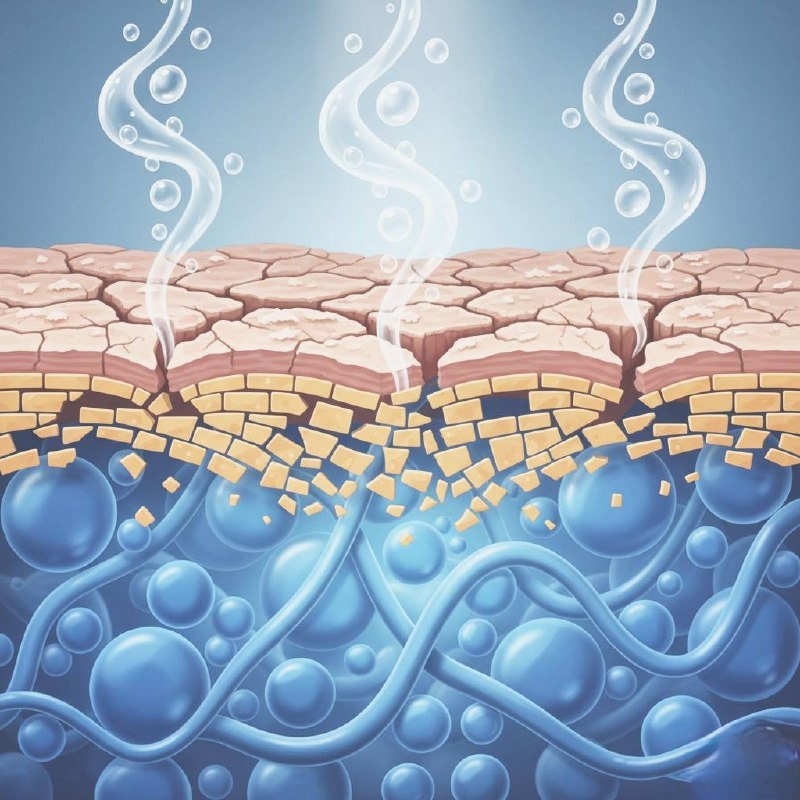 ! Обезвоженная кожа - очень частое явление, особенно в сезон ретинола и в целом в мире, где каждый день куча людей в интернЕтах говорит: «Надо витамин С мазать, чтобы сиять», потом «надо кислоты», а еще «ретинол», а еще «пептиды», «ты еще не пробовала спикулы? ну ты отстаешь, заюш». А, ну и увлажняйся. И вот мы вроде купили эту сыворотку с гиалуроновой кислотой, а лучше не становится. Но увлажнение не равно восстановлению барьера, так как трансэпидермальная потеря влаги (ТЭПВ) становится запредельной! На усиление ТЭПВ влияют: · повреждение липидной мантии; · воспаления; · агрессивные ПАВ; · ретиноиды, кислоты; · УФ-излучение (даже если вы не видите солнца, оно присутствует). Как видите, факторов воздействия много. Поэтому к гиалуронке добавляем в помощь церамиды, жирные кислоты и физические окклюзивы. Особенно в зимний период, когда наша кожа страдает дополнительно от ветра и температурных перепадов.