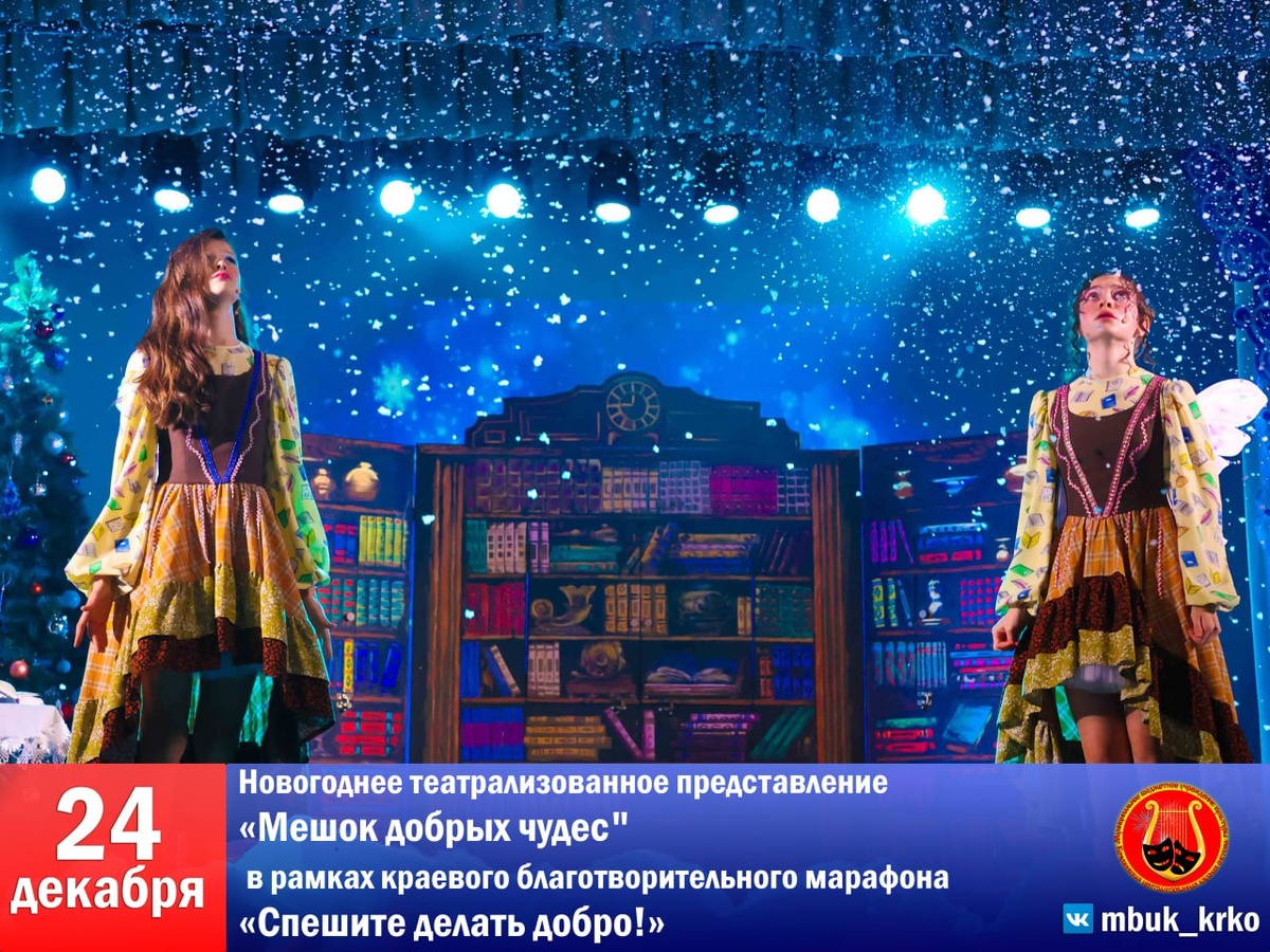 🎇🎄 ДОБРЫЕ ЧУДЕСА ИЗ МЕШКА ДЕДА МОРОЗА 🎇🎄 ✨ Концертный зал районного Дворца культуры превратился в настоящую новогоднюю сказку! В рамках краевого благотворительного марафона «Спешите делать добро!» состоялось новогоднее театрализованное представление «Мешок добрых чудес". 🎆 Эта широкомасштабная благотворительная акция, созданная по инициативе Губернатора Ставропольского края, призвана, в очередной раз, дать нам возможность проявить доброту, готовность в трудную минуту прийти на помощь попавшим в беду семьям и детям . ❄️ Сотни детей и их родителей окунулись в атмосферу сказки, волшебных историй и предновогоднего чуда. С первых минут гости представления были окутаны теплой атмосферой, где Дед Мороз и Снегурочка, как старые-добрые друзья, пригласили всех присутствующих в интерактивную новогоднюю программу. 🪄 На сцене ожили крошки феи, хранительницы волшебных историй, и вместе с юными зрителями они отправились в удивительное путешествие, чтобы раскрыть секрет рождения каждой сказ