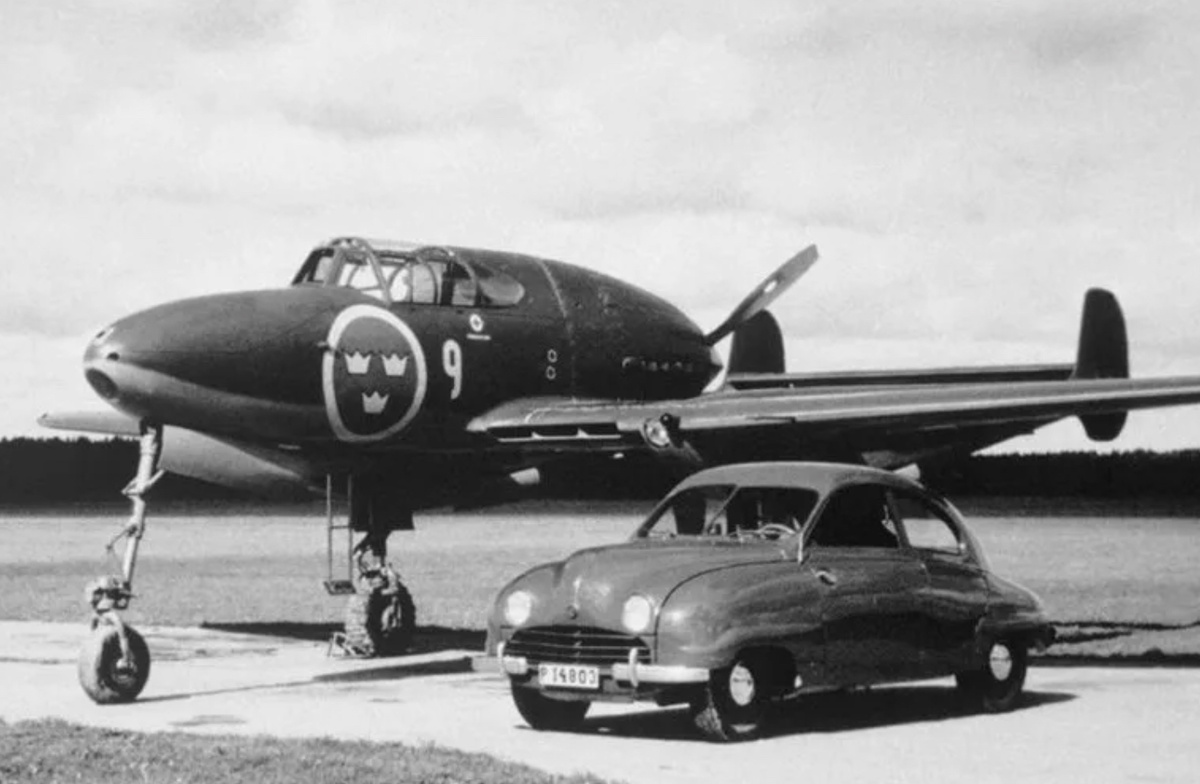 Шведская авиастроительная корпорация Svenska Aeroplan Aktiebolag родилась в конце 1930-х, а после войны авиаторы решили заняться автомобилями. Группа из 16 сотрудников, у многих без водительских прав, приступила к проекту 92, и летом 1947 г. представили первый прототип. Ursaab Прототип Ursaab ("первоначальный" по-шведски) получил аэродинамичный дизайн с коэффициентом лобового сопротивления 0,32 - вдвое лучше конкурентов. 2-тактный 2-цилиндровый DKW на 692 куб. см развивал всего 18 л.с., но при 800 кг разгонял до 100 км/ч. Наработки использовали в серийном SAAB 92 (1949 г.) с форсированным мотором на 764 куб. см и 25 л.с., а первые машины красили в зелёный, потому что осталась авиационная краска военных времён. Sonett В 1955 г. начали проект 94 с бюджетом 75.000 крон, и в марте 1956 г. представили родстер Sonett с алюминиевым кузовом весом 70 кг. При массе полтонны 3-цилиндровый мотор на 748 куб. см и 57 л.с. разгонял до 160 км/ч, но изменения в гоночных регламентах к 1958 г. убили прое