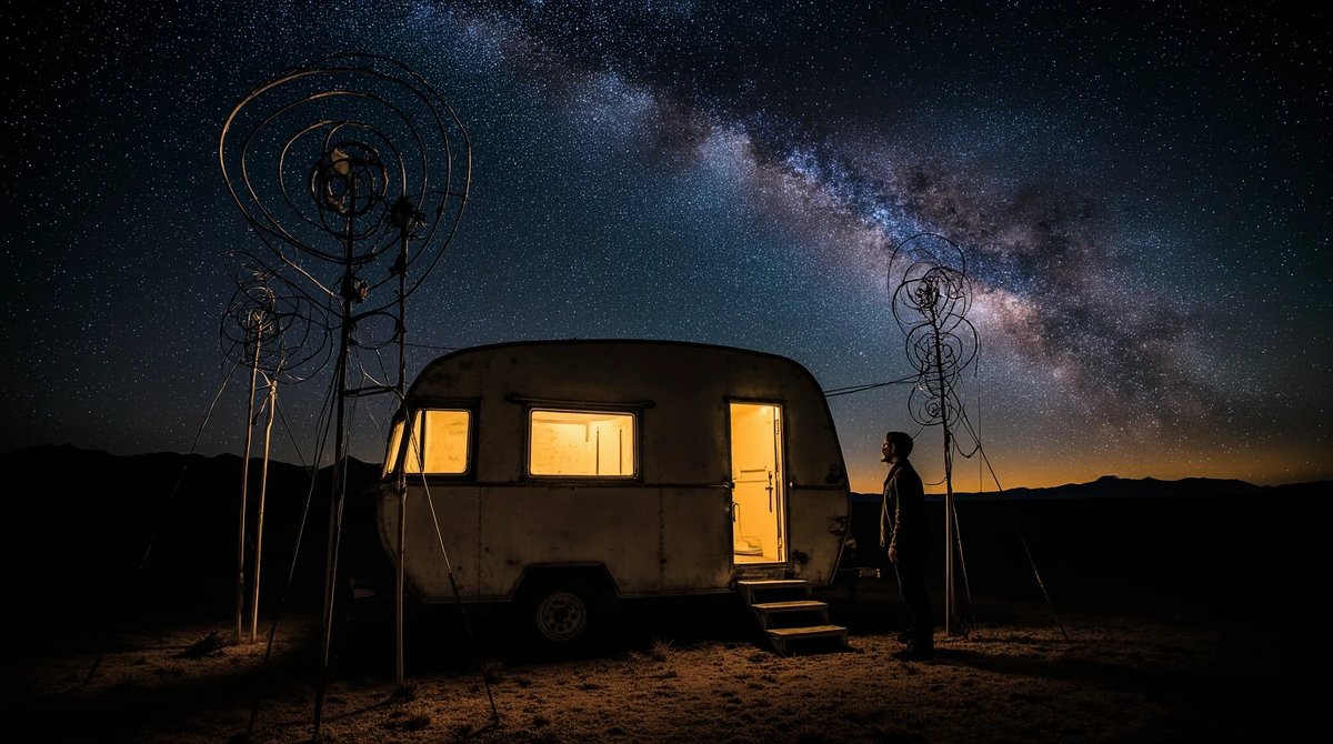 В глухой аризонской пустыне, где раскалённый воздух дрожит над потрескавшейся землёй, а ночи пронизаны безмолвием, произошло то, что навсегда изменило представление одного человека о месте человечества во Вселенной. Джон Риверс, скромный фермер и по совместительству увлечённый радиолюбитель, долгие годы ловил в эфире таинственные сигналы — то ли помехи от далёких звёзд, то ли отголоски неведомых технологий. Но в ту ночь всё было иначе. На фоне привычного космического шума прорезался чёткий, ритмичный сигнал — не случайный всплеск радиации, а явная попытка установить контакт.