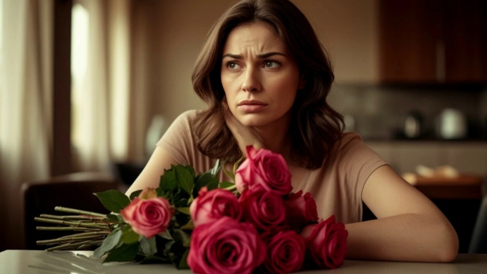 Цветы лежали на кухонном столе, упакованные так, как упаковывают обязанность. Безупречно ровные стебли, глянцевая лента, пятнадцать алых роз. Ровно столько, сколько полагается жене после тридцати лет брака.