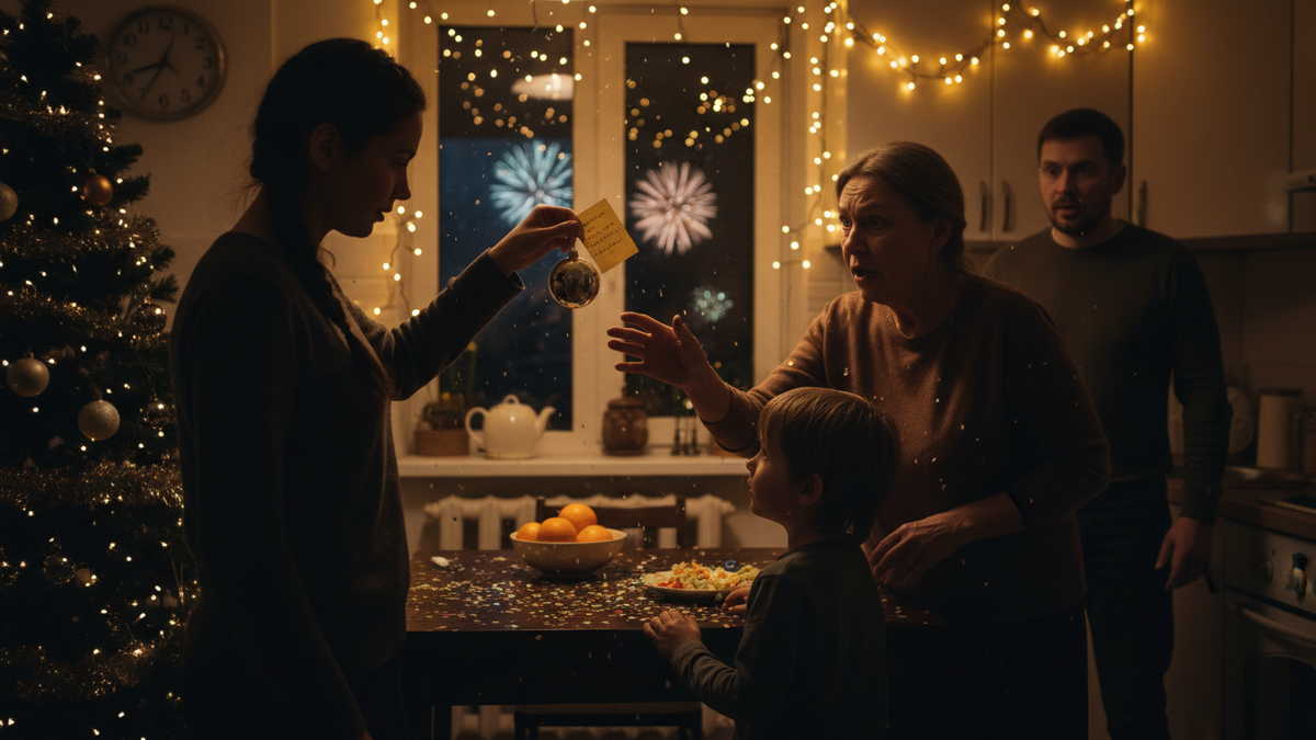 — Давайте… — сказала я, сама не зная, откуда это берётся. — Давайте сделаем одну штуку. Я когда-то читала… что на Новый год хорошо сказать вслух одно «спасибо» и одно «прости». Не для красоты. Для себя.