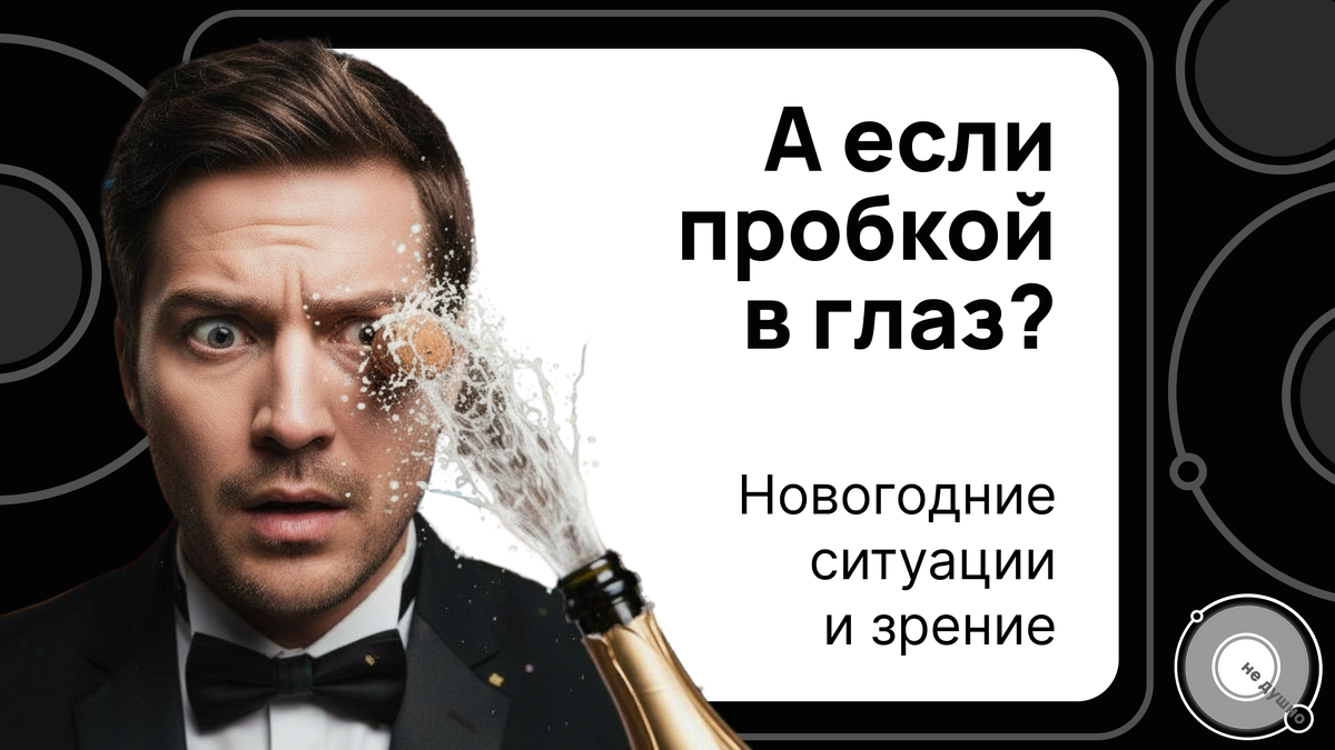 Когда в квартире пахнет мандаринами, под ёлкой мигают гирлянды, а в холодильнике теснятся салаты. Всё идеально до того момента, пока кто-то не решит эффектно открыть шампанское... Разбираем топ-3 ситуации, которые знакомы каждому. А это значит, вы в зоне риска. Пробка вылетает со скоростью около 40 км/ч — примерно как велосипедист на спуске. Если она попадает в глаз, ощущения не из приятных. В лучшем случае, глаз покраснеет, заболит, начнёт слезиться. В худшем — лопнувшие сосуды / зрачок мутнеет от крови / травма хрусталика. Это вам не Гринч, это реальный ужас. Да, мы хотим чуть припугнуть, чтобы спасти ваш праздник! Что делать: Как избежать: Открывайте бутылку под углом 45 градусов, от себя и подальше от людей. Держите салфетку сверху, чтобы пробка не улетела в космос. Эффектность — это хорошо, но пусть она будет безопасной. После пары бокалов может начаться лёгкое двоение — это мышцы глаз расслабились вместе с вами. При большем количестве еды и алкоголя цвета становятся не такими яр