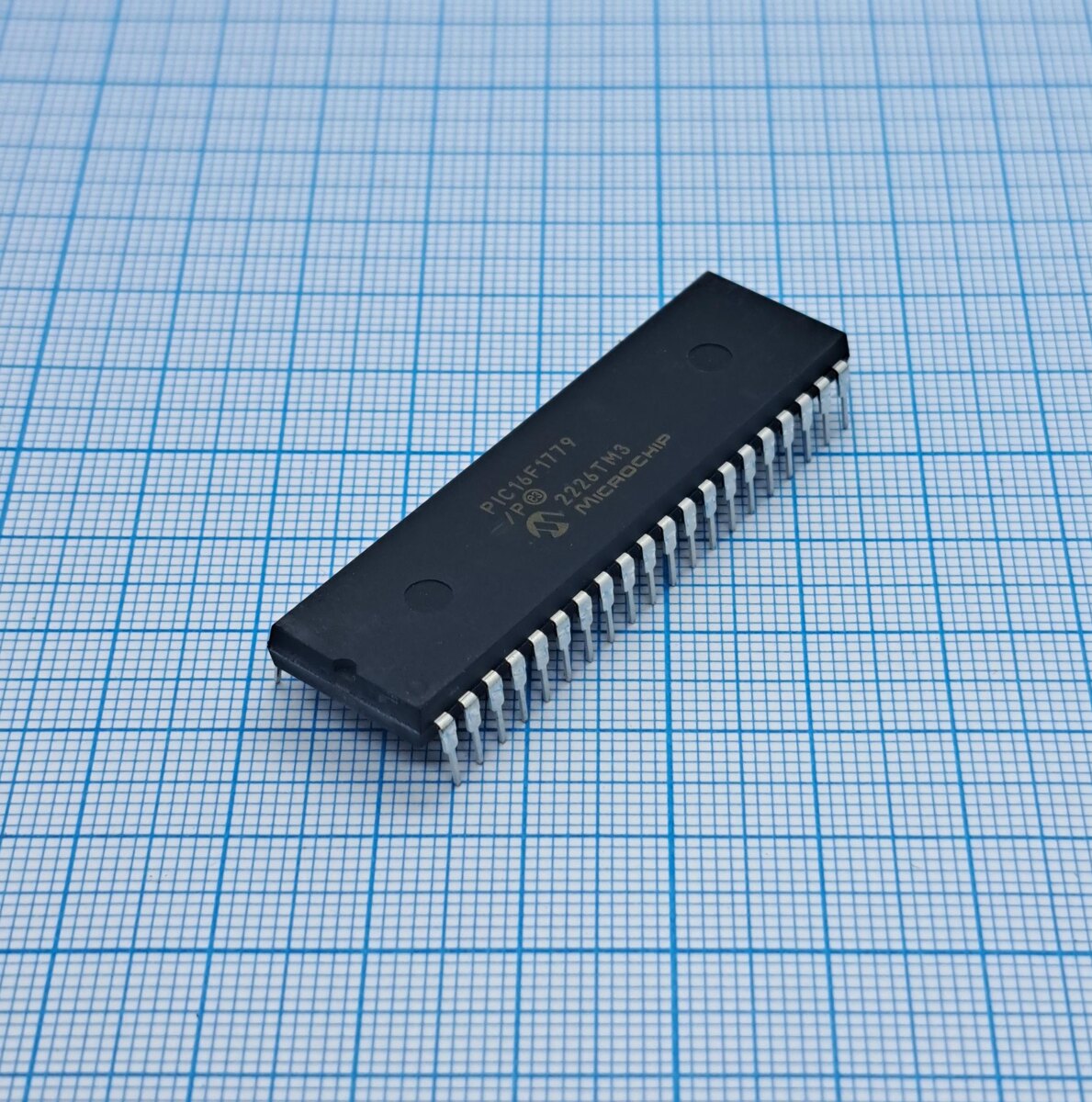 PIC16F1779‑I/P — 8‑битный микроконтроллер семейства PIC16 от Microchip Technology. Отличается высокой степенью интеграции аналоговой и цифровой периферии, что делает его оптимальным для сложных встраиваемых систем: освещения, источников питания, зарядки аккумуляторов, управления двигателями и др. 1. Архитектура: 8‑битная PIC. 2. Тактовая частота: до 32 МГц. 3. Память программ (Flash): 28 КБ. Оперативная память (RAM): 2 КБ. 4. Напряжение питания: 2,3−5,5 В. 5. Корпус: PDIP‑40 (40 выводов). 6. Цифровые интерфейсы: - 1 канал I²C; - 1 канал SPI; - 1 канал UART/USART; - программируемый генератор линейной развёртки (PRG). 1. RISC‑процессор с сокращённым набором команд. 2. Внутренняя тактовая генерация (32 МГц и 32 кГц). 3. Гибкая конфигурация периферии через PPS (Peripheral Pin Select) — упрощает разводку платы. 4. Поддержка замкнутых контуров без использования внешних компонентов. 1. Богатая аналоговая периферия (АЦП, ЦАП, ОУ, компараторы) — снижает потребность во внешних компонентах. 2. Ги