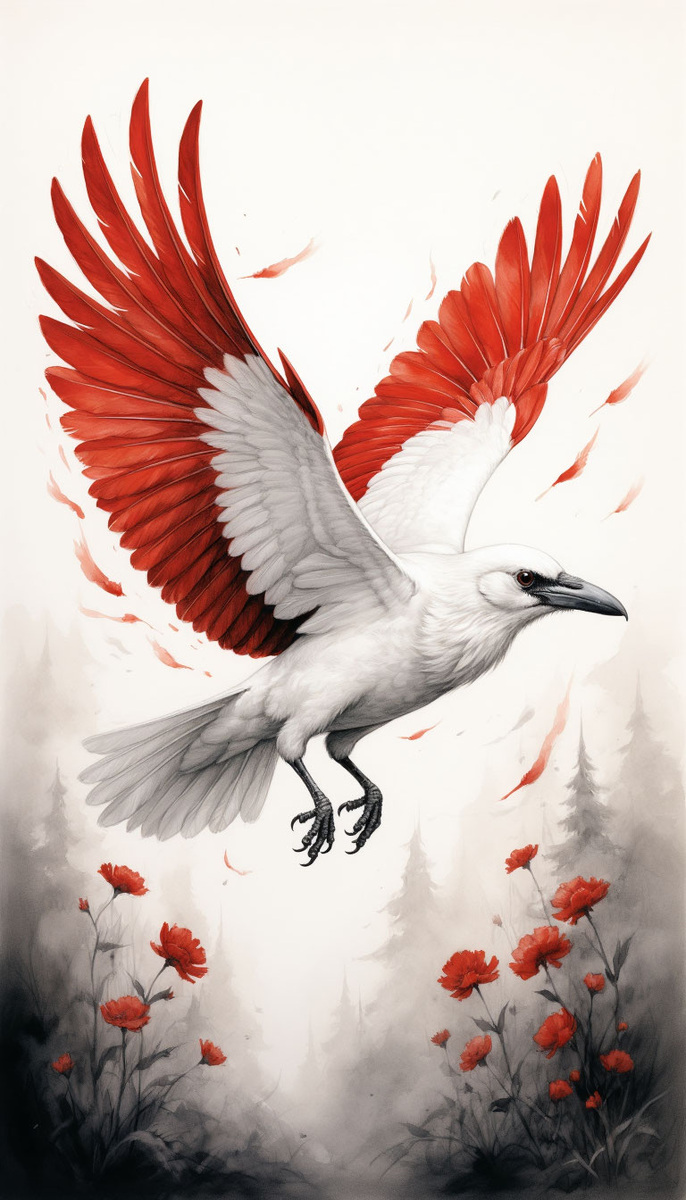 Альба сидела на ветке, когда с её красного крыла потекла первая струйка грязно-розовой воды. Краска, эта дешёвая маска, сдалась под напором настоящей природы. Алый символ пополз, расплылся и смылся, обнажив влажное, обычное, просто белое перо. Никакой крови, никакого огня. Только мокрая, жалкая птица.