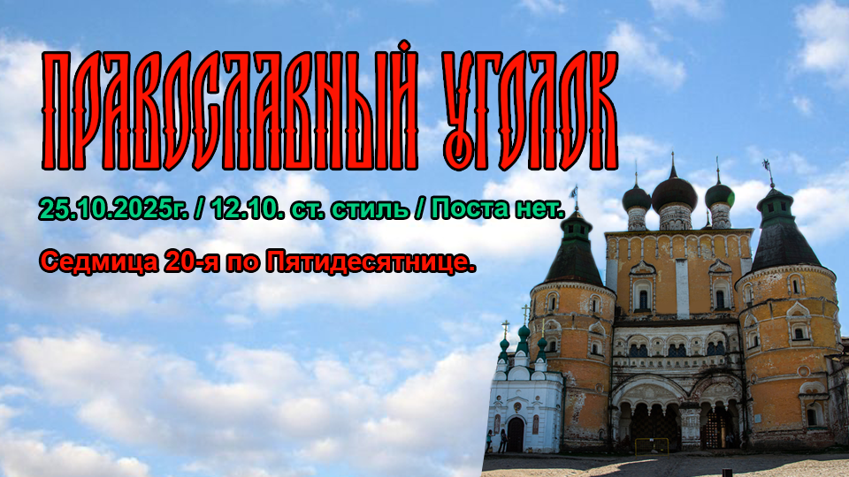 Седмица 20-я по Пятидесятнице. День памяти мучеников Прова, Тараха и Андроника. День памяти Преподобного Космы Маиу́мского, Святоградеца, творца канонов, епископа. День памяти преподобного Амфилохия Глушицкого. День памяти Св. Иоа́нна Летникова, исп. (1930). День памяти прмч. Лавре́нтия (Левченко), иеромонаха (1937). День памяти сщмч. Алекса́ндра Поздеевского, пресвитера (1940). День памяти свт. Николая (Могилевского), исп., митрополита Алма-Атинского (1955). Святые мученики Пров, Тарах и Андроник пострадали за Христа в 304 году в городе Тарсе Киликийском. На предложение язычников принести жертву идолам святой Тарах, старый воин, ответил, что он приносит жертву Единому, Истинному Богу в чистом сердце. Видя твердость святых в исповедании истинной веры, проконсул предал их пыткам. "Когда мое тело страдает, – говорил идолопоклонникам святой Пров, – тогда душа моя исцеляется и оживляется". Истязатели изощрялись в мучениях, какие только могла измыслить их злоба, а потом разрубили тела святы