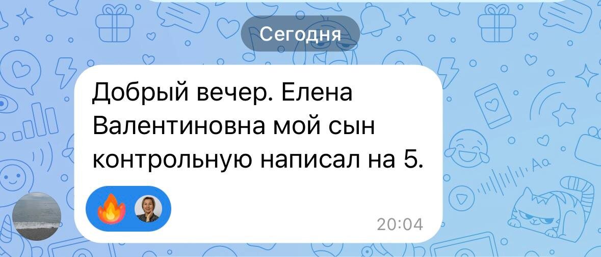 Это и есть результат работы репетитора, когда родители пишут об успехах своих детей.