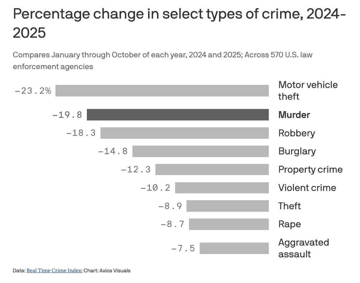 ‘The U.S. is on pace for the largest one-year drop in murders the nation has ever recorded, according to an analysis by crime stats expert Jeff Asher,’ Axios reports Chicago saw a 28% decline, while NYC and Memphis had a 20% decline