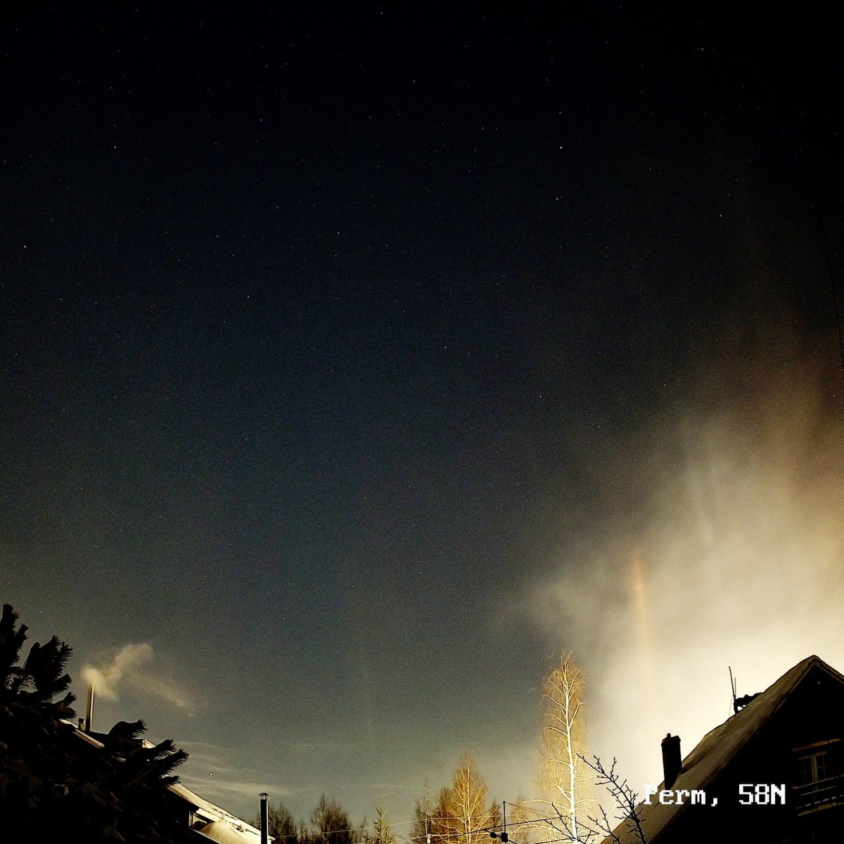 В одну из самых прохладных ночей 2025 года можно было наблюдать световые столбы и совсем слабую Аврору