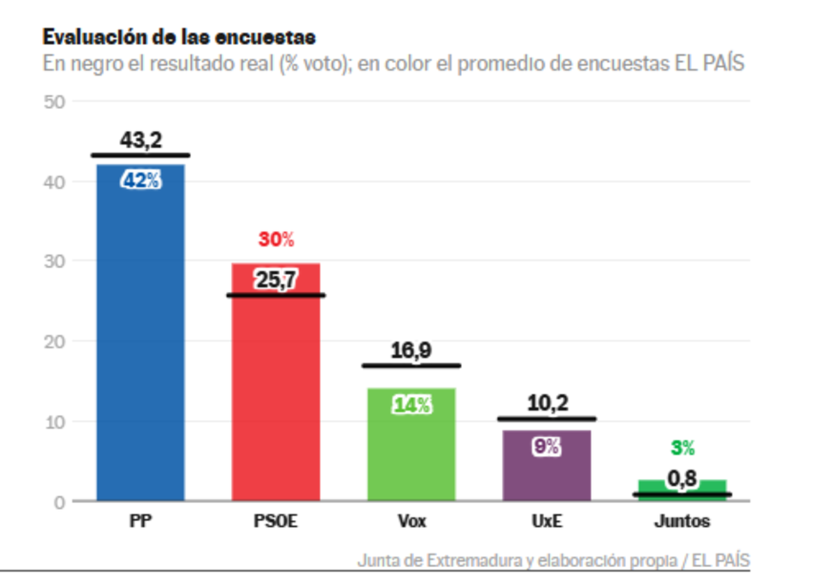 В минувшее воскресенье жители Эстремадуры (Extremadura) сделали свой выбор, а предвыборные опросы вновь оказались в центре внимания. На этот раз они предсказали уверенную победу Partido Popular, но без абсолютного большинства. Однако детали распределения голосов и поддержка других партий оказались для многих неожиданностью. Средняя ошибка по партиям составила около 2,4 процентных пункта — чуть выше обычного уровня. В сравнении с прошлыми годами, когда прогнозы были точнее, нынешние результаты вызвали вопросы у экспертов. В 2024 году опросы демонстрировали куда более высокую точность, особенно на выборах в Каталонии, Стране Басков и Галисии. Тогда аналитики отмечали, что средняя погрешность не превышала двух пунктов. Сейчас же даже усреднённые данные не смогли существенно снизить ошибку. Прогнозы верно определили победителя и заметили снижение поддержки PSOE, но недооценили этот спад. Vox, напротив, оказался недооценён почти на три пункта. В итоге избиратели Эстремадуры проголосовали пр
