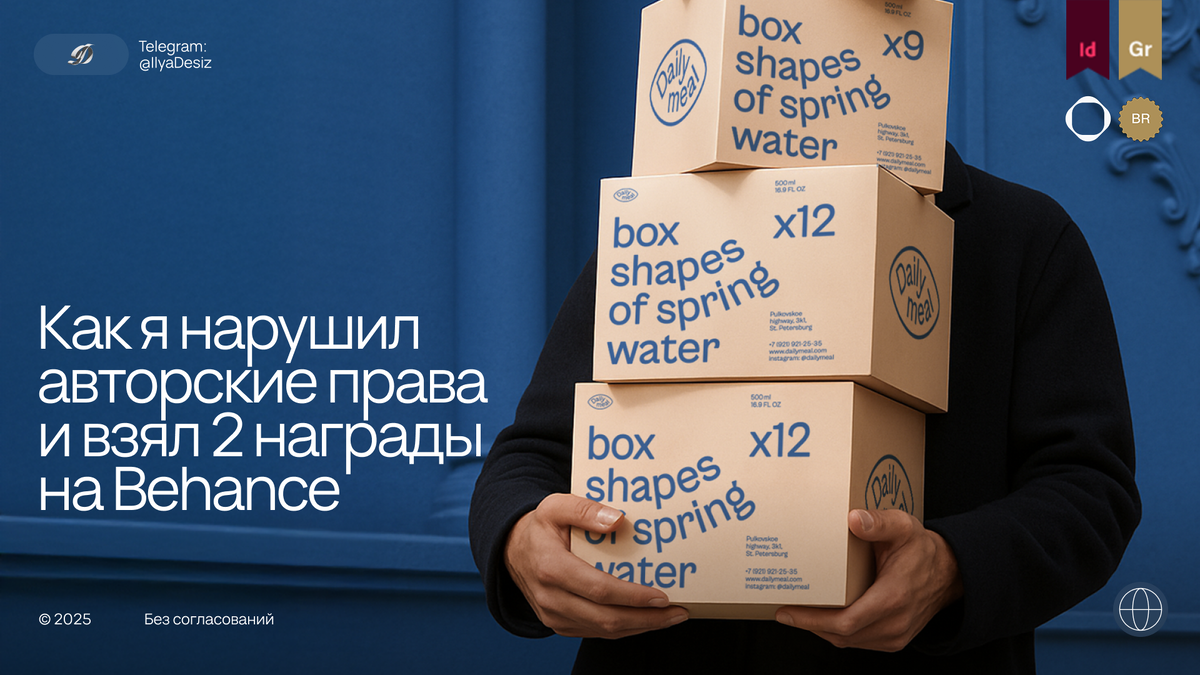 Было дело — упаковывал кейс для Behance. Это ещё до появления нейросетей. Нашёл в интернете вкусное фото, которое идеально подходило под мой проект. НО использовать чужое — не по кайфу! Решил схитрить. У меня есть навыки ретуши — взял фото и отретушировал до неузнаваемости. Поменял цвета, композицию, детали. Сделал всё, чтобы не было похоже на оригинал. Вставил свой дизайн в «новый мокап». Кейс выложил. Получил одну награду на Behance. Потом вторую. А потом случилась магия Pinterest Эта фотка взорвала Pinterest. Куча репостов, сохранений. И тут алгоритмы Pinterest сработали — стали подбирать "похожие фото". Через месяц мне пишут ребята — авторы оригинального фото. Написали что-то в этом роде на английском: «Вы используете наш контент незаконно, если не удалите отовсюду — вам напишет наш юрист». Удалил везде. Но награды остались — легко отделался. Не горжусь этой историей. Не хотел 1 в 1 брать, хотелось сделать круто. И получилось — но у всего есть последствия. Даже если переделываете