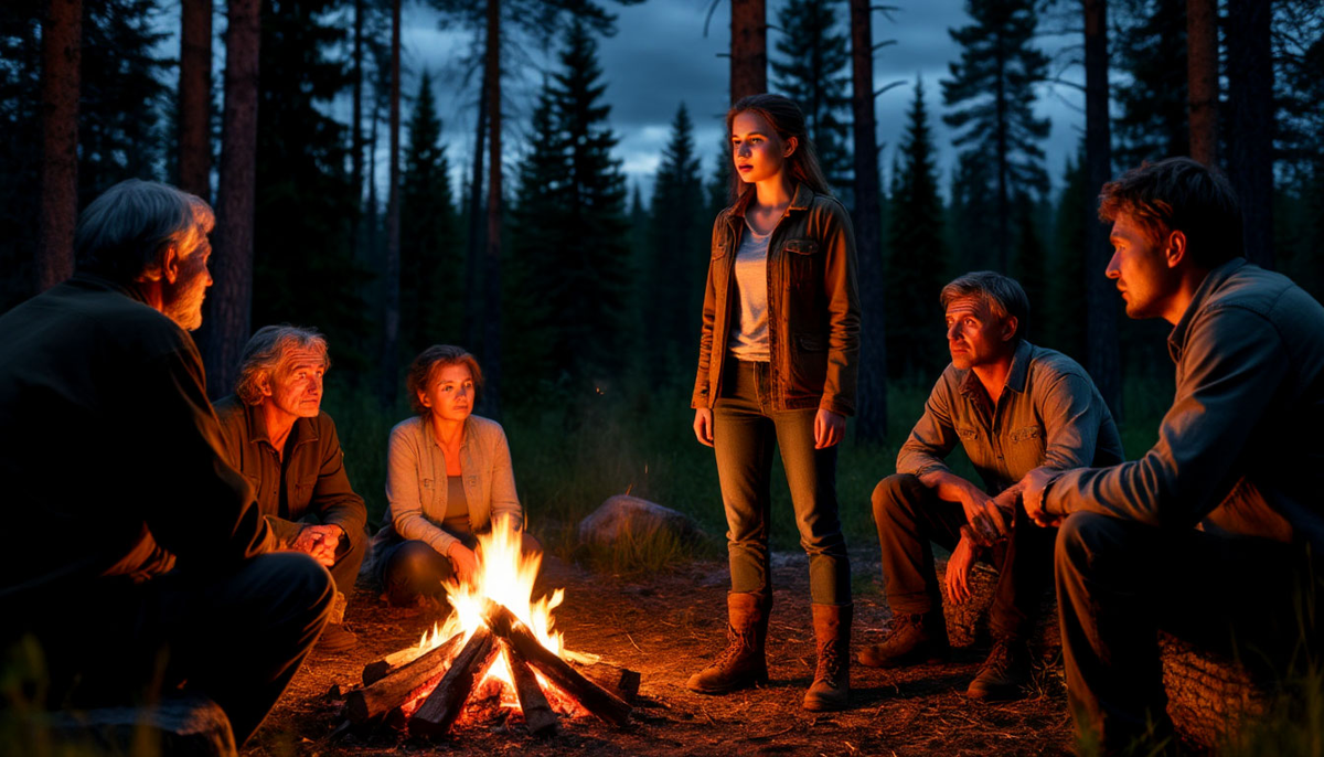 Я обвела взглядом их лица, потом тёмный силуэт леса, встававший стеной за поляной.