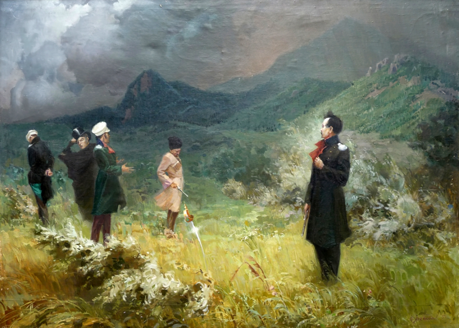 Вечером 13 июля в Пятигорске, в доме генерала Верзилина, собралось веселое общество. Михаил Лермонтов, скучающий и язвительный, беседовал с одной из дочерей хозяйки. Его знакомый, отставной майор Николай Мартынов, недавно вышедший в отставку и предававшийся кавказскому романтизму, появился в гостиной в эффектном черкесском наряде, с большим кинжалом у пояса.