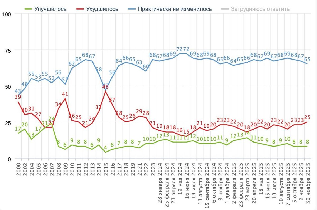 Иллюзия процветания, построенная на бюджетных вливаниях, начинает развеиваться. Когда четверть населения прямо заявляет об обнищании, а ожидания будущего мрачнее, чем в разгар прошлых кризисов, государственная статистика превращается в род литературы фэнтези. Граждане, судя по всему, перешли в режим глухой обороны, окончательно перестав верить в то, что завтра будет лучше или хотя бы чуть сытнее, чем вчера.