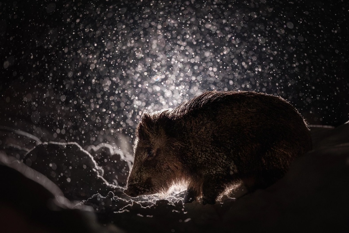 Так назвал этот снимок с конкурса РГО «Самая красивая страна» его автор Александр Федосов. Фото из национального парка «Лосиный Остров». И вот что тут еще добавишь? Ночной портрет. Кабана. В метель. Если бы у кабана была анкета на сайте знакомств, такой портрет точно был бы на аватарке. Шикарен!