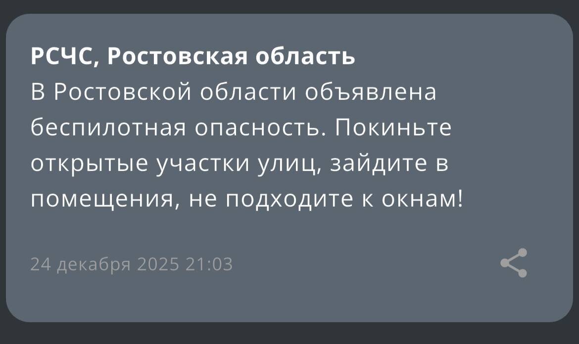 ‼️Экстренная информация РСЧС: В Ростовской области объявлена беспилотная опасность.