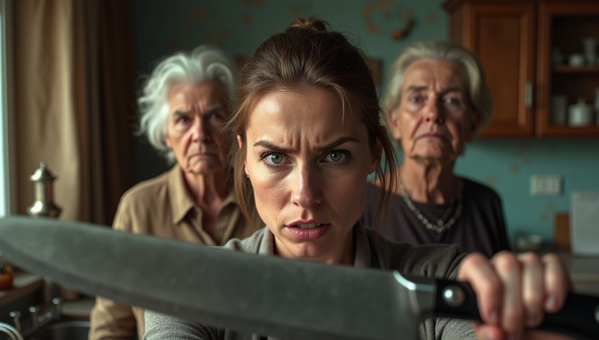 Игорь дернулся к ней, чтобы вырвать телефон, но Марина отступила назад и схватила со столешницы тяжелый нож для мяса — тот самый, который он ей подарил. В её глазах было столько решимости, что мужчина замер.