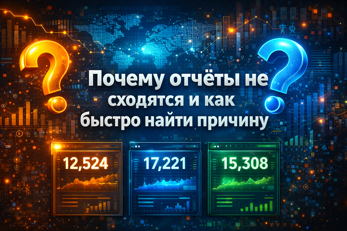 Один отчёт считает выручку как оплачено, второй - как выставлено, третий - как отгружено. Один отчет включает отмены в вал, другой их вычитает. Один отчет фильтрует тестовые заказы, другой нет. В итоге люди спорят не о цифрах, а о том, что вообще называется выручкой, просто не проговаривая этого вслух.
