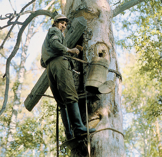 Бортник это мастер бортничества, древнего промысла по добыче мёда диких пчёл. В отличие от пасечника, который содержит пчёл в рукотворных ульях, бортник работал с природными или искусственно созданными дуплами (бортями) в живых деревьях. Слово «бортник» происходит от «борть» - дупло, приспособленное для пчелиного гнезда. Это ремесло требовало не только знаний о пчёлах, но и навыков деревообработки, ориентирования в лесу, физической выносливости. Борти размещали в толстых деревьях (диаметром около метра) на высоте от 4 до 15 метров. Предпочитали породы: сосну, липу, дуб, вяз, тополь, ветлу. Процесс создания борти: В одном дереве могло быть до четырёх бортей. Срок службы такой «пасеки» достигал 150 лет, но раз в десятилетие её требовалось чистить. Весна Лето Осень Поднимаясь на высоту, бортник привязывал ёмкость к верёвке - снизу её подавали помощники. Бортные деревья были объектом собственности. Их помечали особыми знаками - «знамёнами», которые сообщали о владельце. Закон строго защища