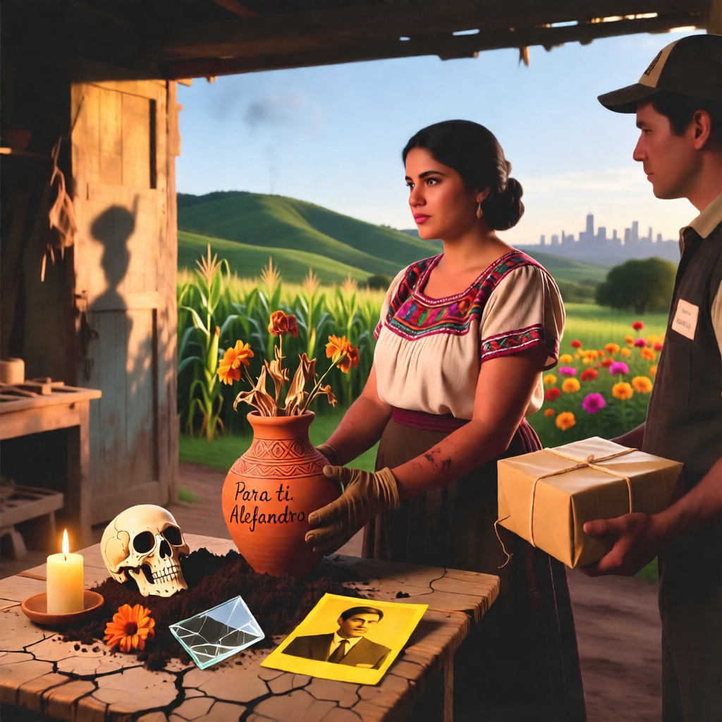 Она взяла ту самую, уродливую, полную ярости вазу, которую вылепила в день его последнего письма. Она наполнила ее землей с холма, где они впервые поцеловались. Она положила туда осколки сахарного черепа, который подарила ему в Праздник Мертвых. Она добавила засушенный цветок бархатца и колосок пшеницы — символы жизни и возрождения.