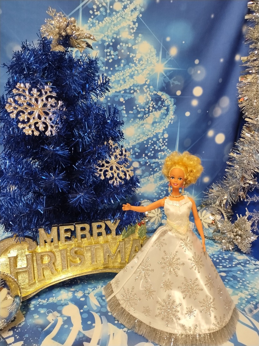 столом. Я подготовила для своих подписчиков несколько Рождественских сюжетов с разными своими куколками. Сегодня я предлагаю вашему вниманию вот этот праздничный сюжет: - Красавица Барби поздравляет всех с Рождеством! Это очень к