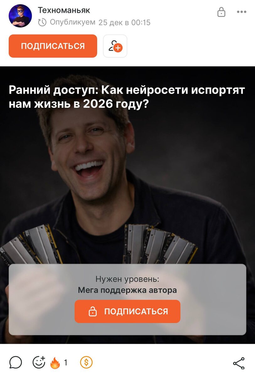 Теперь видео будут выходить для платных подписчиков на Boosty раньше чем на YouTube, а еще создал отдельный чат и возобнавляю полезные статьи👍🏻 Первое видео о том как ИИ испортит жизнь КАЖДОМУ в 2026 году уже на Boosty 👉🏻 https://boosty.to/tehnomaniak/posts/da1d610d-c544-40c2-878b-5fa76eae3de6?share=ios_post_link