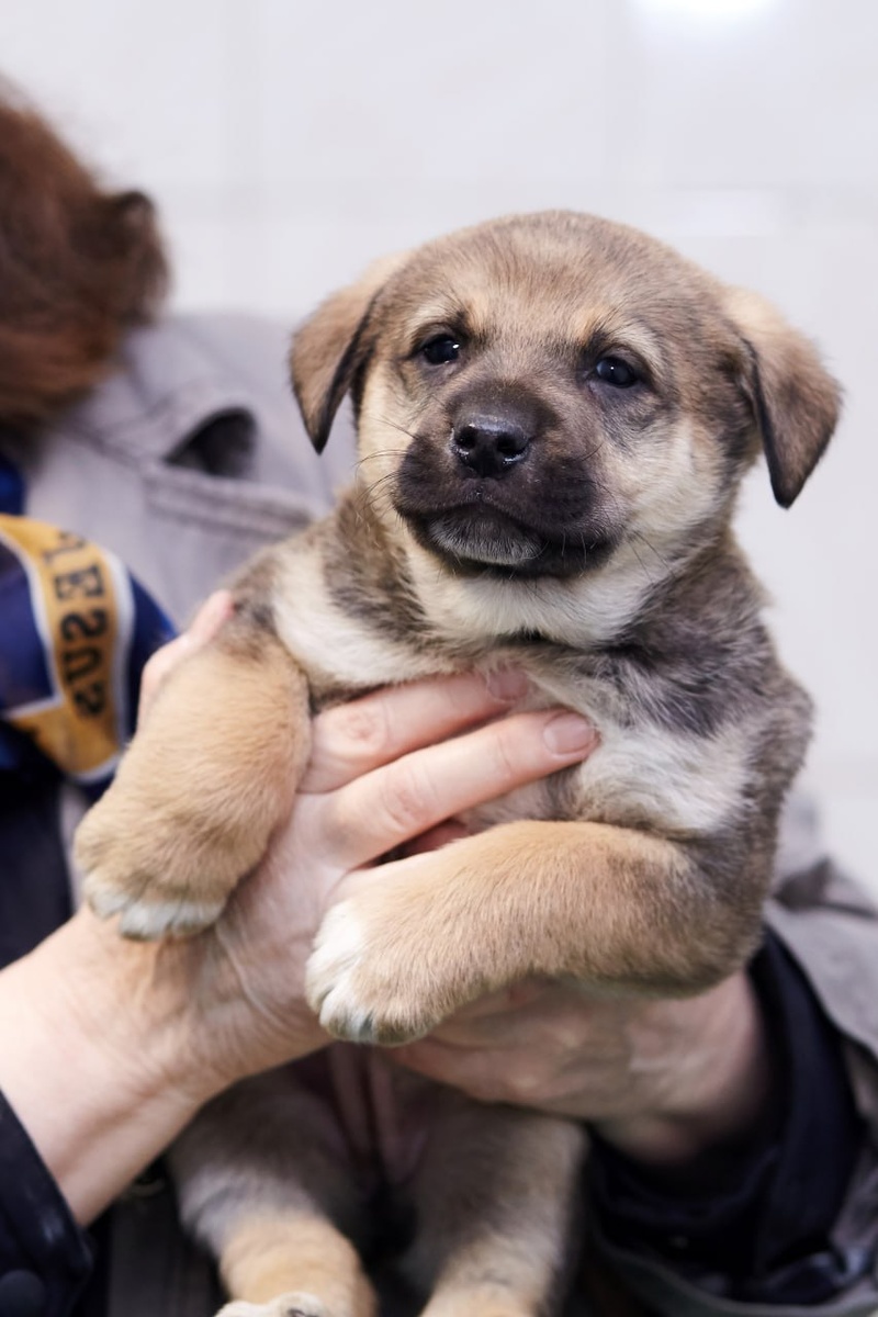 Евочка родилась от выброшенной мамы овчарки. Папу мы тоже увидели. Алабаистый такой пес, статный красивый, но бездомный(.