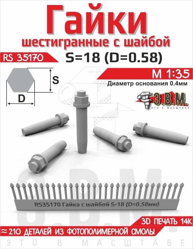 Э.В.М. из Севастополя выпустила на 3D-принтере комплекты шестигранных гаек с шайбами (каталожные номера 35170 - 35178) в масштабе 1/35.