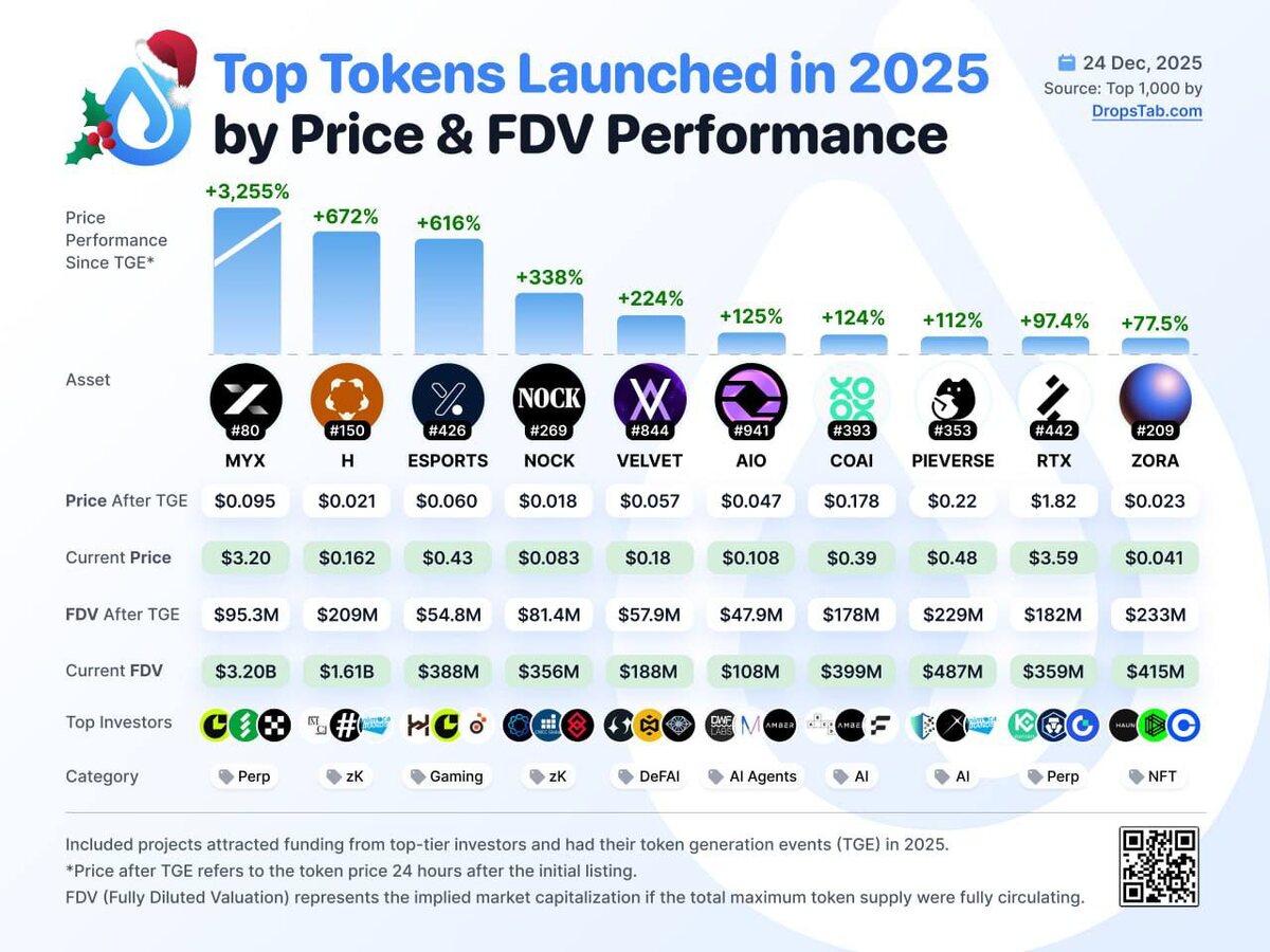 DropsTab: топ токены, запущенные в 2025г по росту цены и капитализации