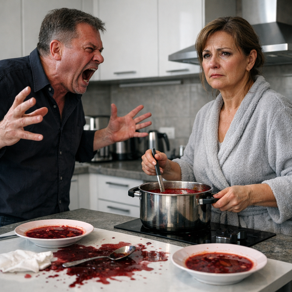 — Опять борщ?! — Андрей застыл на пороге кухни, и лицо его сразу стало красным, будто кто-то включил внутри него какой-то тумблер. — Я просил, я тебя вчера просил — мясо по-французски! Нормально попросил! А ты что?!