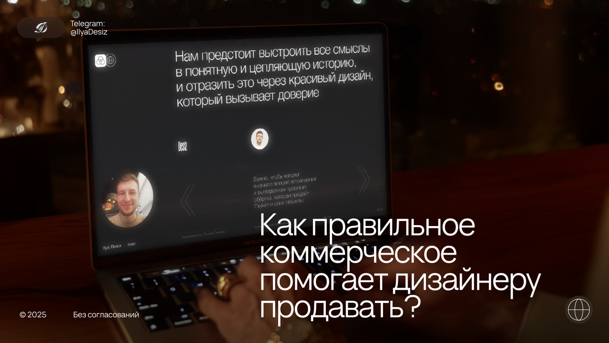 Без структурированного коммерческого предложения дизайнер превращается в обычного исполнителя. Клиенты воспринимают его как поставщика картинок, а не как консультанта по бизнес-задачам. За последние 4 месяца отправил 16 персональных коммерческих предложений. 11 из них закрылись продажами. Конверсия 69% — не потому что обладаю сверхспособностями, а потому что каждый слайд КП решает конкретную задачу продаж.