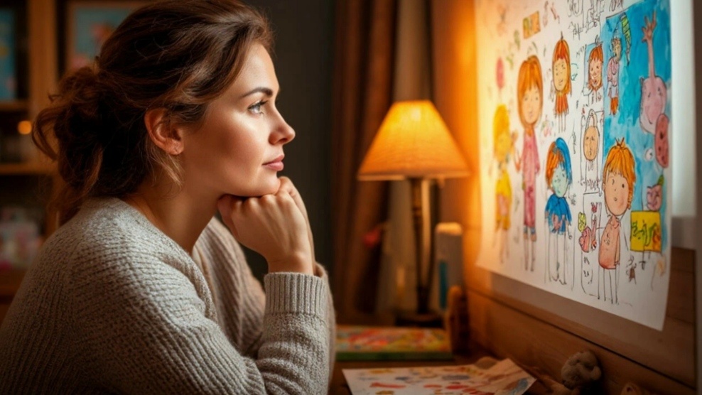 И тогда накатило. Стыд — горячий, удушающий. Она кричала на детей. Из-за обоев. Из-за дурацкого рисунка, под которым было написано «Мама, я тебя люблю».