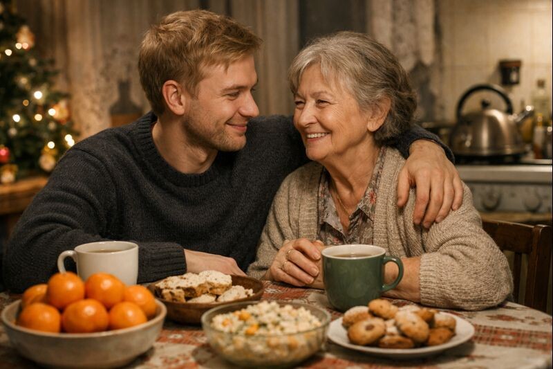 — «Огонёк», конечно. — Тамара Сергеевна произнесла это так, будто сказала: «традиция». — Они там поют, песни старые… Я раньше любила. Раньше… когда муж был. Он всегда в этот момент наливал мне чуть‑чуть шампанского и говорил: «Томка, ну давай, улыбнись». А я… я улыбалась.