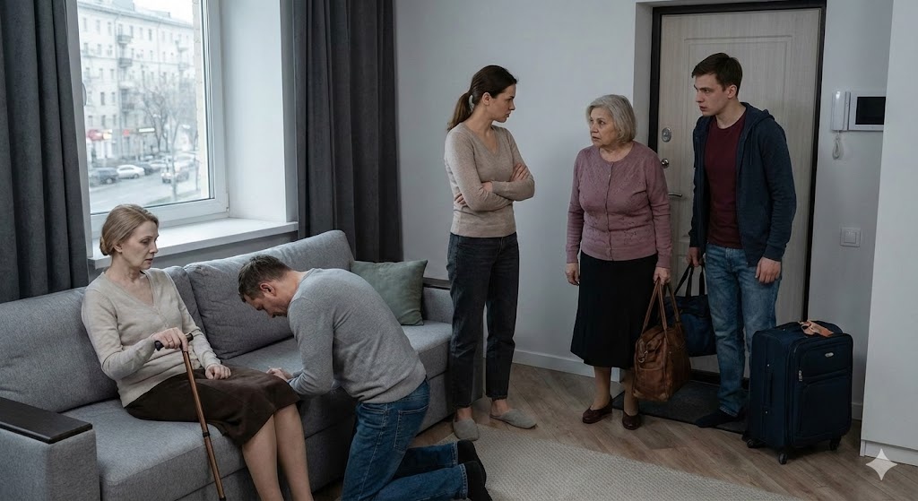 Дверь спальни открылась. На пороге стояла Марина. Она опиралась на трость, которую мы купили по дороге, её лицо было бледным, но решительным.