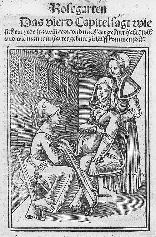 Только в XVI веке она вновь привлекает внимание учёных врачей: в 1513 году появилось первое, снабжённое рисунками, руководство по акушерству Евхария Ресслина «Цветник беременных женщин и акушерок»; за ним последовали сочинения Якова Руфа в Цюрихе (1553), Вальтера Рейфа в Страсбурге (1561).