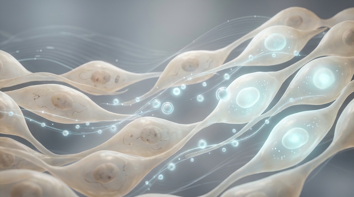 Молодые клетки (фибробласты) полны сил, они активно строят «дом» — вырабатывают коллаген и эластин. А старые клетки — это уставшие работники, которые забыли свои инструкции и лениво сидят на перекуре. Так вот, экзосомы — это SMS-сообщения, которые молодые клетки отправляют старым. Экзосома — это крошечный микроп