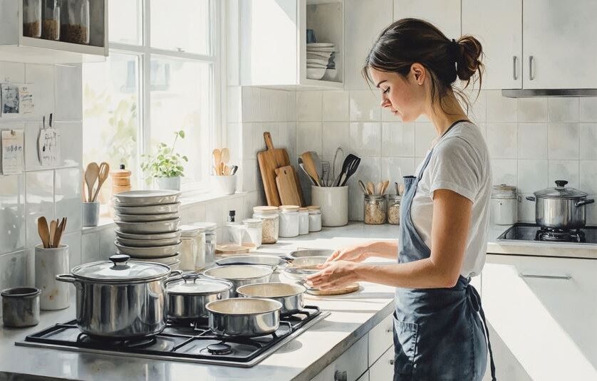 В прошлое воскресенье Ольга решила испечь овощную запеканку. Формы не оказалось — только старая керамическая кастрюля, в которой она обычно варила суп. Раньше она бы махнула рукой и достала сковородку, но на этот раз вспомнила советы: выстелила дно пергаментом, поставила кастрюлю прогреваться вместе с духовкой и оставила крышку приоткрытой, чтобы выходил пар.