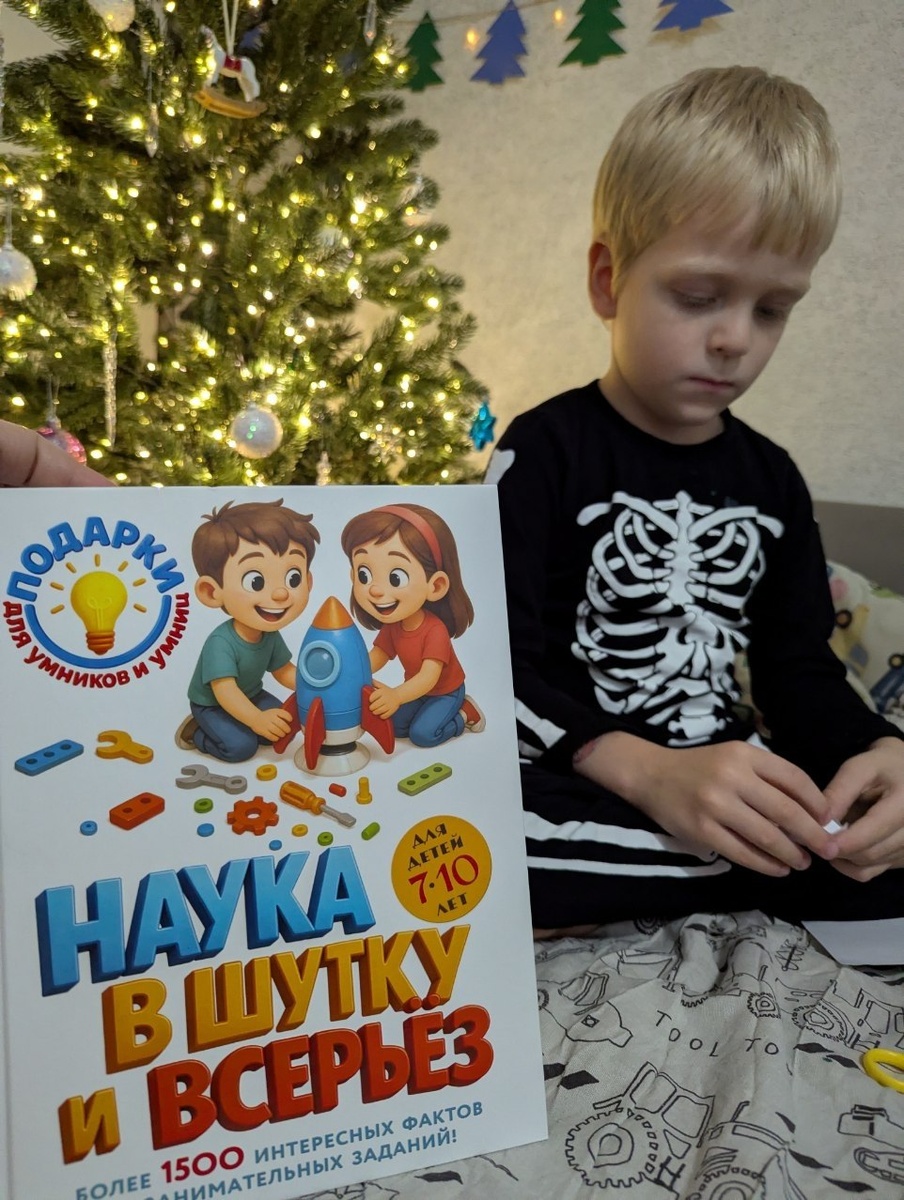 У нас это первая настолько большая и всеобъемлющая энциклопедия. Столько всего, что Дёма даже картинки не успел пересмотреть за вечер. Но смастерить поделку успел!) В книге: 💛научные открытия 💛исторические факты 💛английский язык 💛занимательные головоломки 💛интересные поделки На каждой странице — загадки, шутки, задания на внимание. И всё это интересно не только ребенку. 〽️ Не дарите эту книгу ребёнку вечером. Лечь спать будет практически невозможно, внутри столько интересного! Издательство @eksmo_education 🎅 Канал «Мам, смотри!»