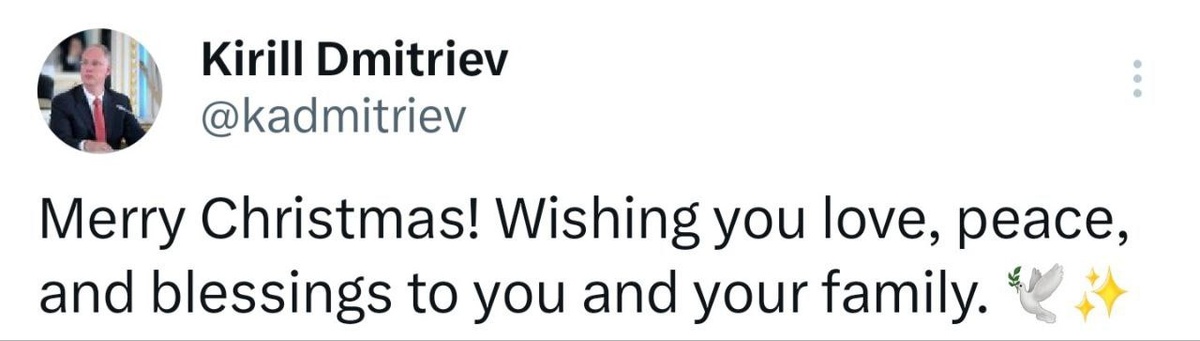 Putin's special envoy Dmitriev wishes Merry Christmas to ALL