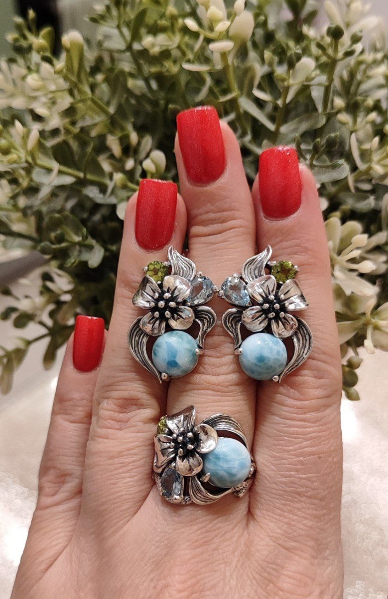 Ларимар (топаз и хризолит). Кольцо 19.5 р.