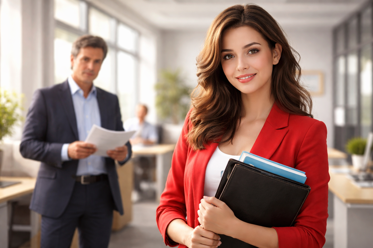 На собеседование Олеся собиралась как на праздник. Она выбрала красный жакет с рукавом три четверти и чёрную юбку миди.