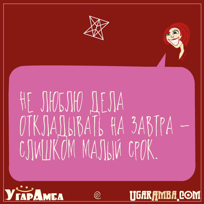 Не люблю дела откладывать на завтра — слишком малый срок. Источник