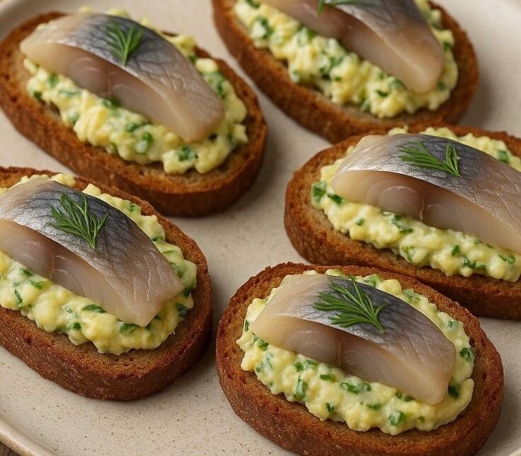 Ингредиенты: - хлеб (лучше с отрубями или ржаной) - яйцо вареное - 1 шт - огурец свежий- 1 шт - зелень по вкусу - лук зеленый или репчатый - майонез для заправки - филе малосольной селедки. Приготовление Хлеб подсушить в тостере или на сухой сковородке. Для насадки натереть яйцо и огурец, добавить измельченный лук и зелень. Заправить майонезом и перемешать. На каждый кусочек хлеба выложить слой намазки. Сверху положить кусочек сельди и украсить веточками укропа. Приятного аппетита!