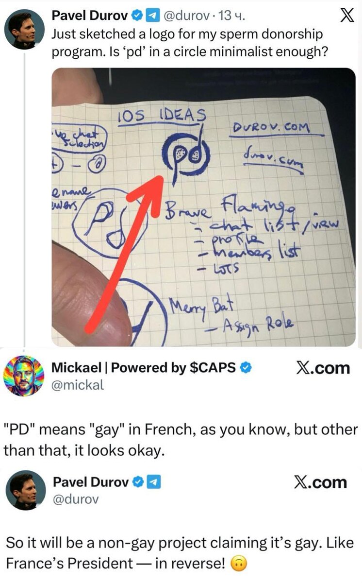 : Набросал логотип для своей программы донорства спермы. Достаточно ли минималистично будет использовать слово «pd» в круге? [Как вы знаете, "PD" по-французски означает "гей", но в остальном всё выглядит нормально] Это будет негейский проект, который будет выдавать себя за гейский. Как президент Франции — только наоборот! Аркадий Борисов: подписаться!